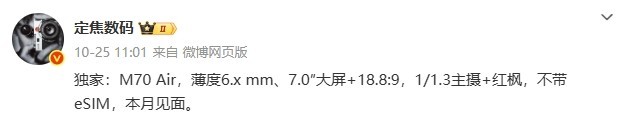 华为Mate 70 Air有望本月发布 核心配置曝光 并非eSIM